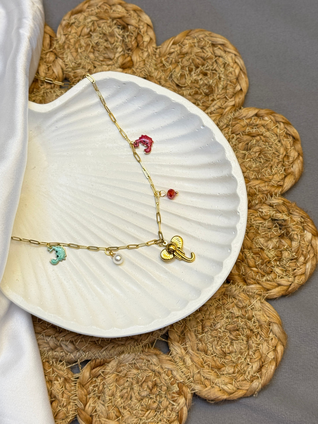 Phool Mahal β Floral kemp Necklace with Colourful Stones & Green Beads