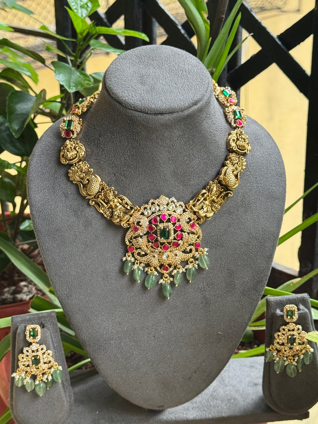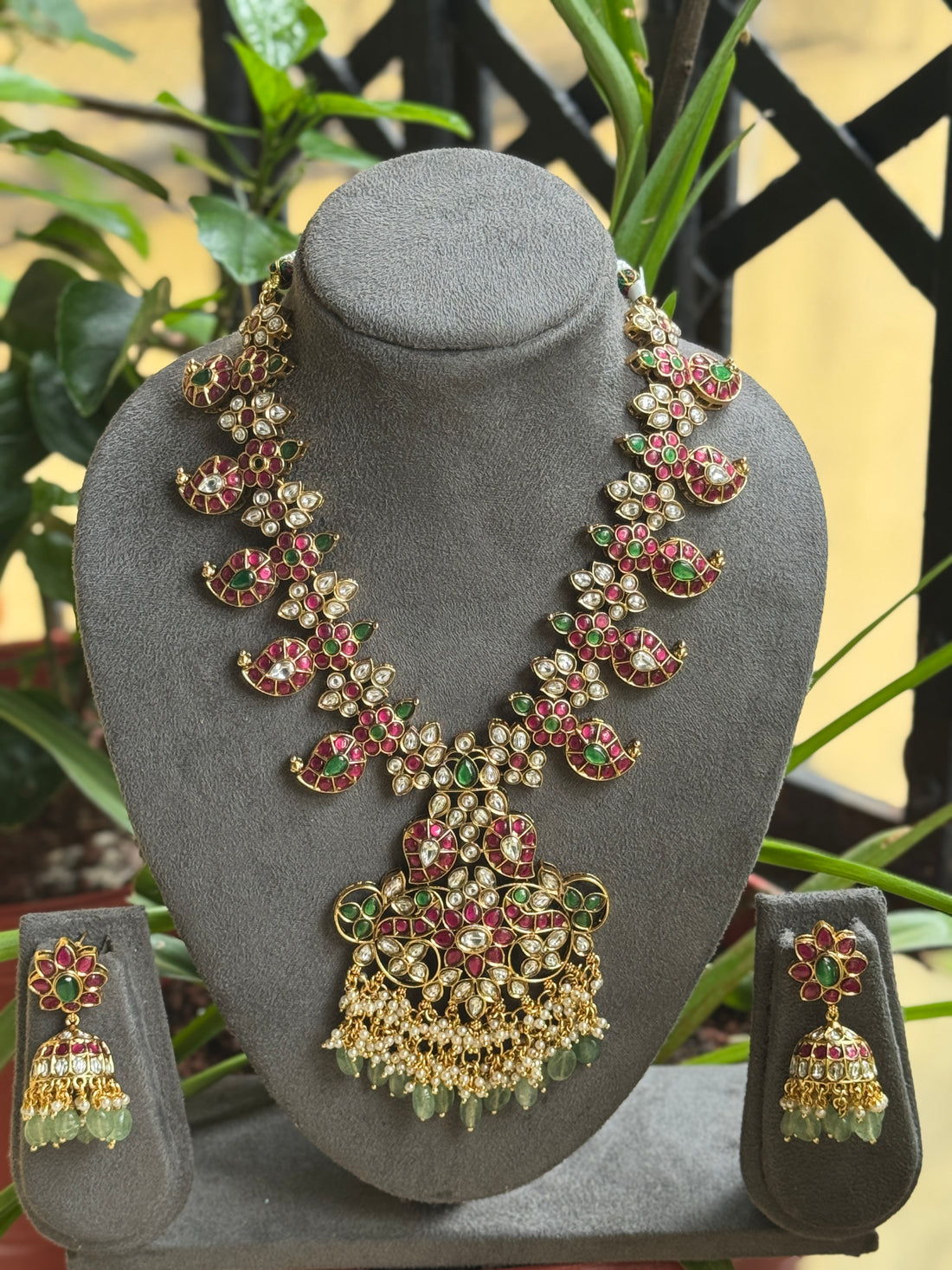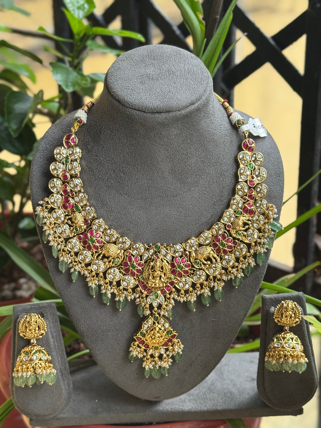 This stunning Jadau necklace is a masterpiece of craftsmanship, featuring intricate detailing that exudes elegance...