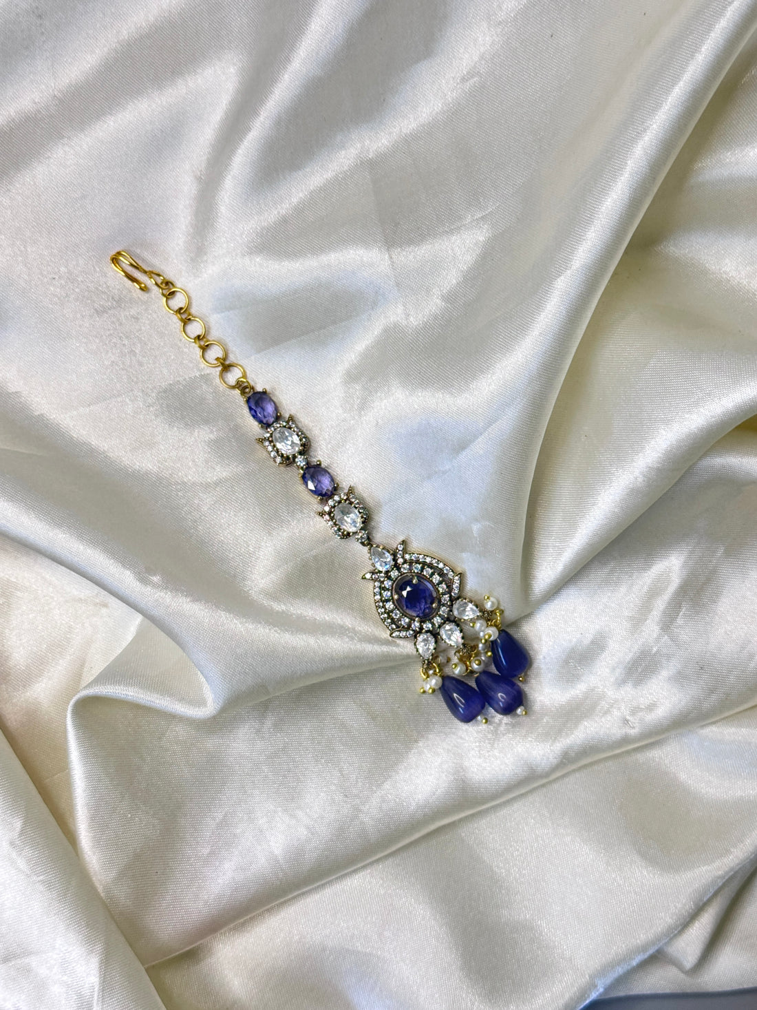 Exquisite Purple Stone Maangtikka with Matching Beads