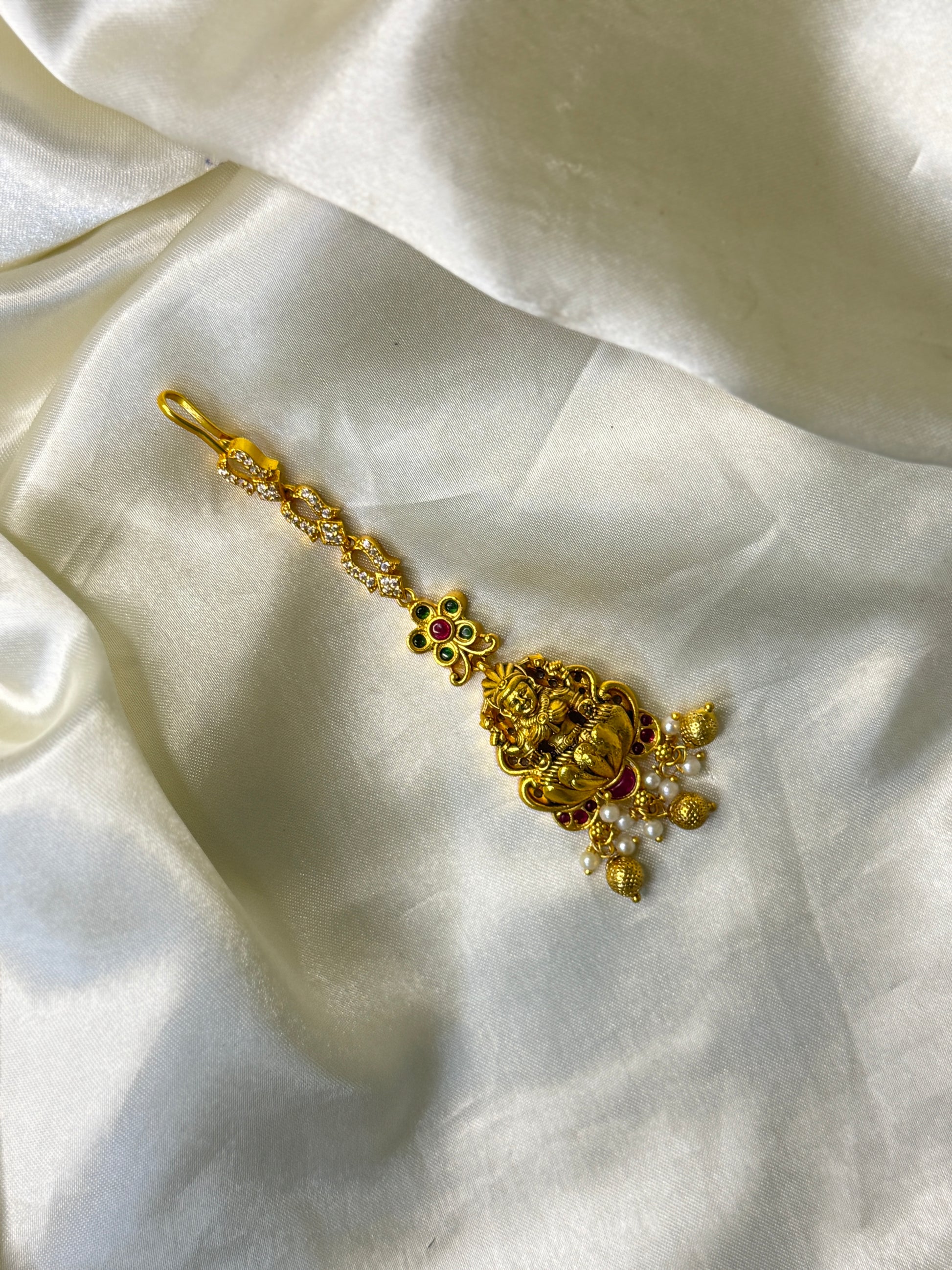 Antique Lakshmi Maangtikka with Stone Accents & Golden Beads