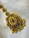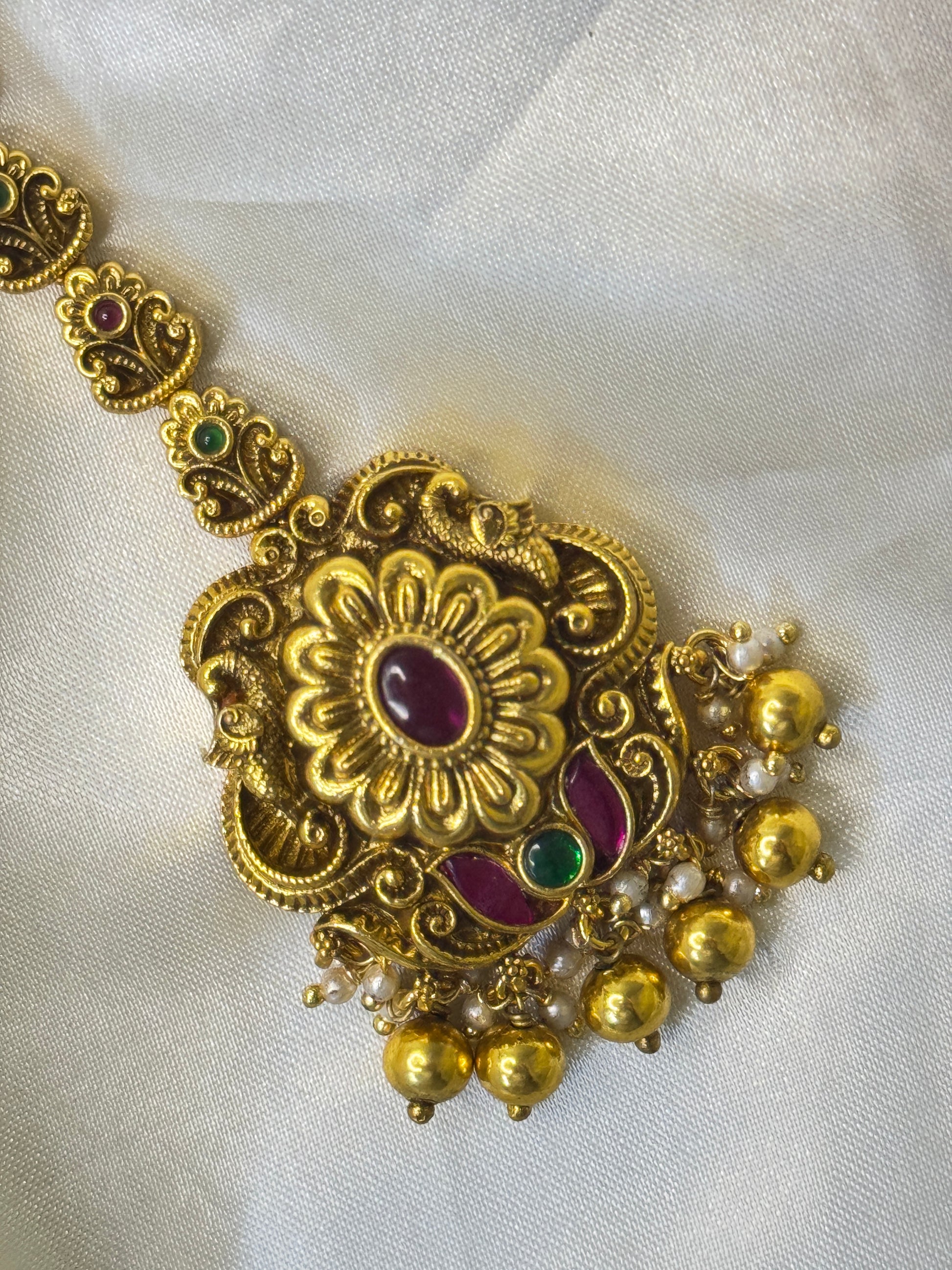 Antique Peacock & Floral Maangtikka with Golden Beads