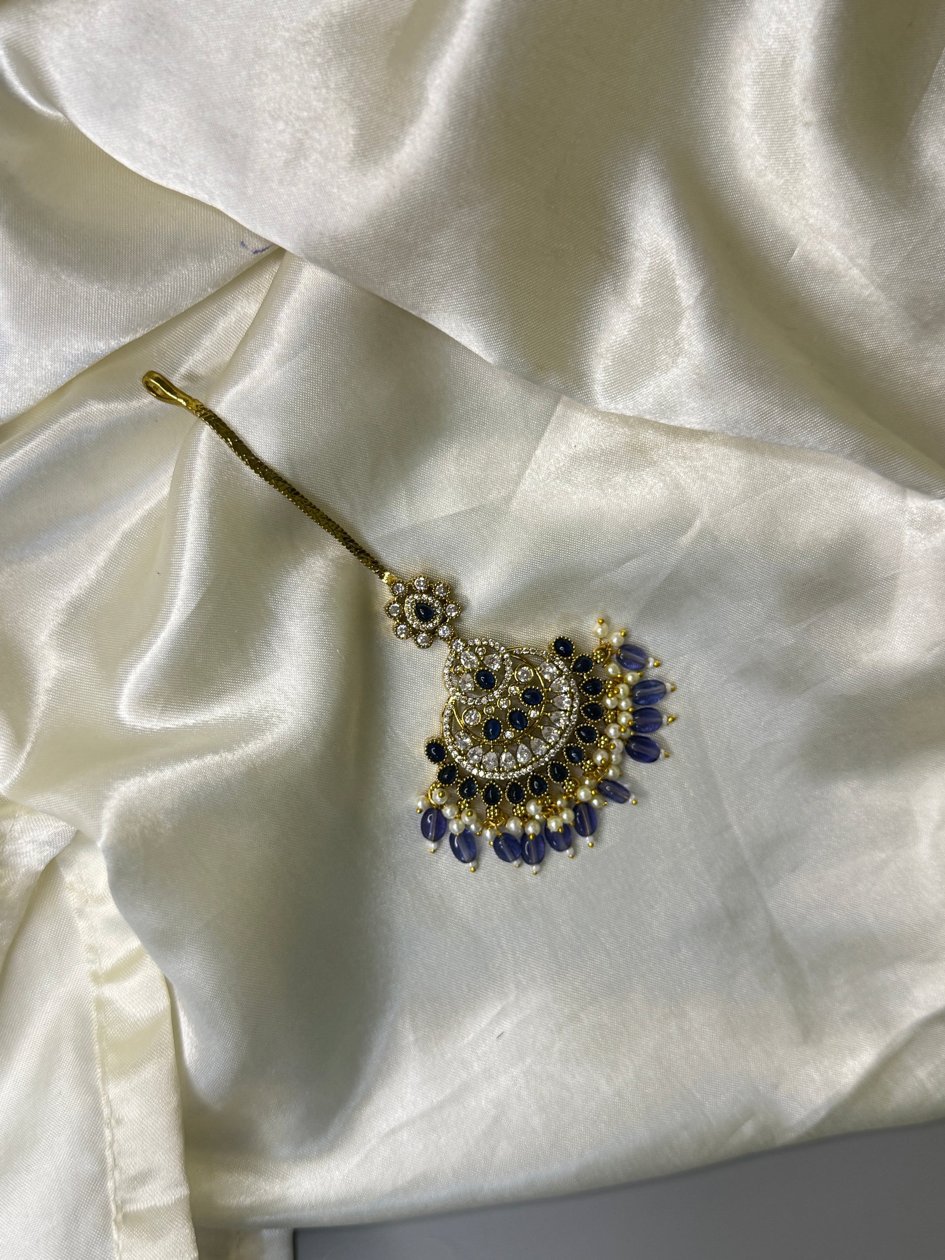 Add a touch of royal charm with this stunning Victorian-style maangtikka, adorned with mesmerizing purple stones and delicate purple beads. The intricate design exudes vintage elegance, making it a perfect choice for weddings, festive occasions, and special celebrations. A statement accessory that beautifully complements both traditional and fusion outfits, this maangtikka is a must-have for a regal and sophisticated look
