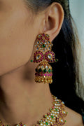 Bridal Antique Kemp Necklace with Multicolor Stones & Leaf with Jhumka
