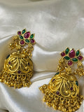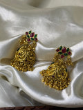 A blend of tradition and elegance, these antique jhumka earrings feature a mesmerizing lotus design, symbolizing purity and grace. The finely detailed craftsmanship is enhanced by cascading golden beads, adding a royal touch to the timeless jhumka silhouette. Perfect for weddings, festive gatherings, and cultural celebrations, these statement earrings exude vintage charm while offering a graceful finish to your look. Lightweight and intricately designed, they are a must-have for those who love heritage-inspired jewelry.