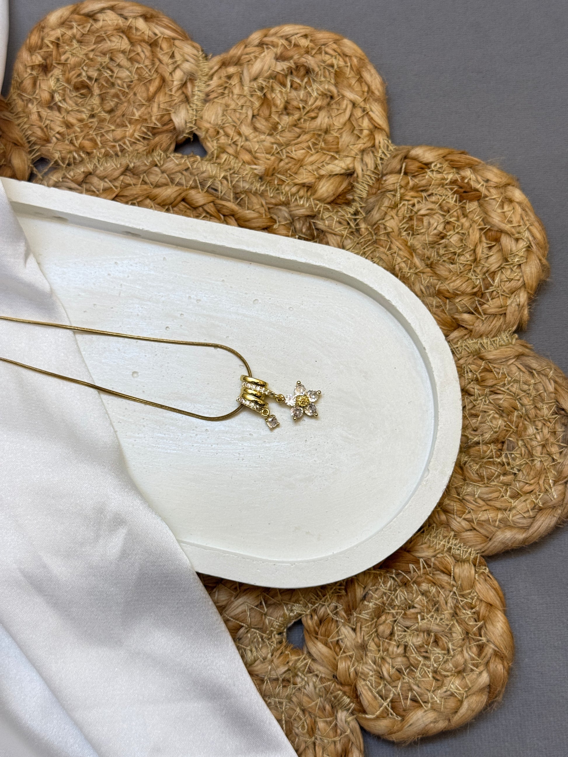 Water Exposure: While stainless steel is water-resistant, we recommend removing your jewellery before swimming (especially in chlorinated or saltwater) or prolonged exposure to moisture to protect the 18K gold plating.