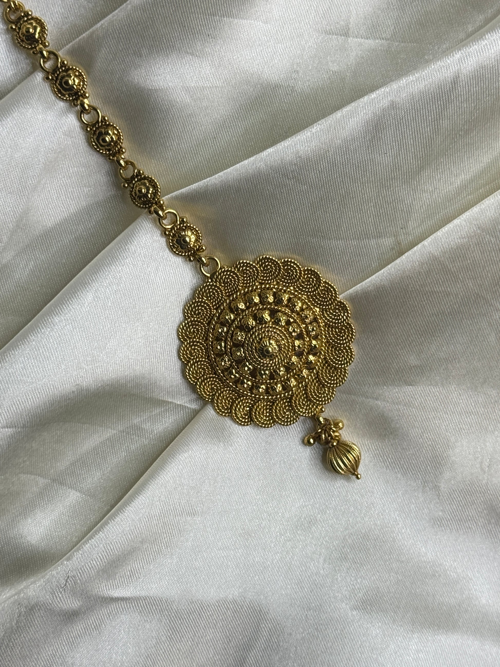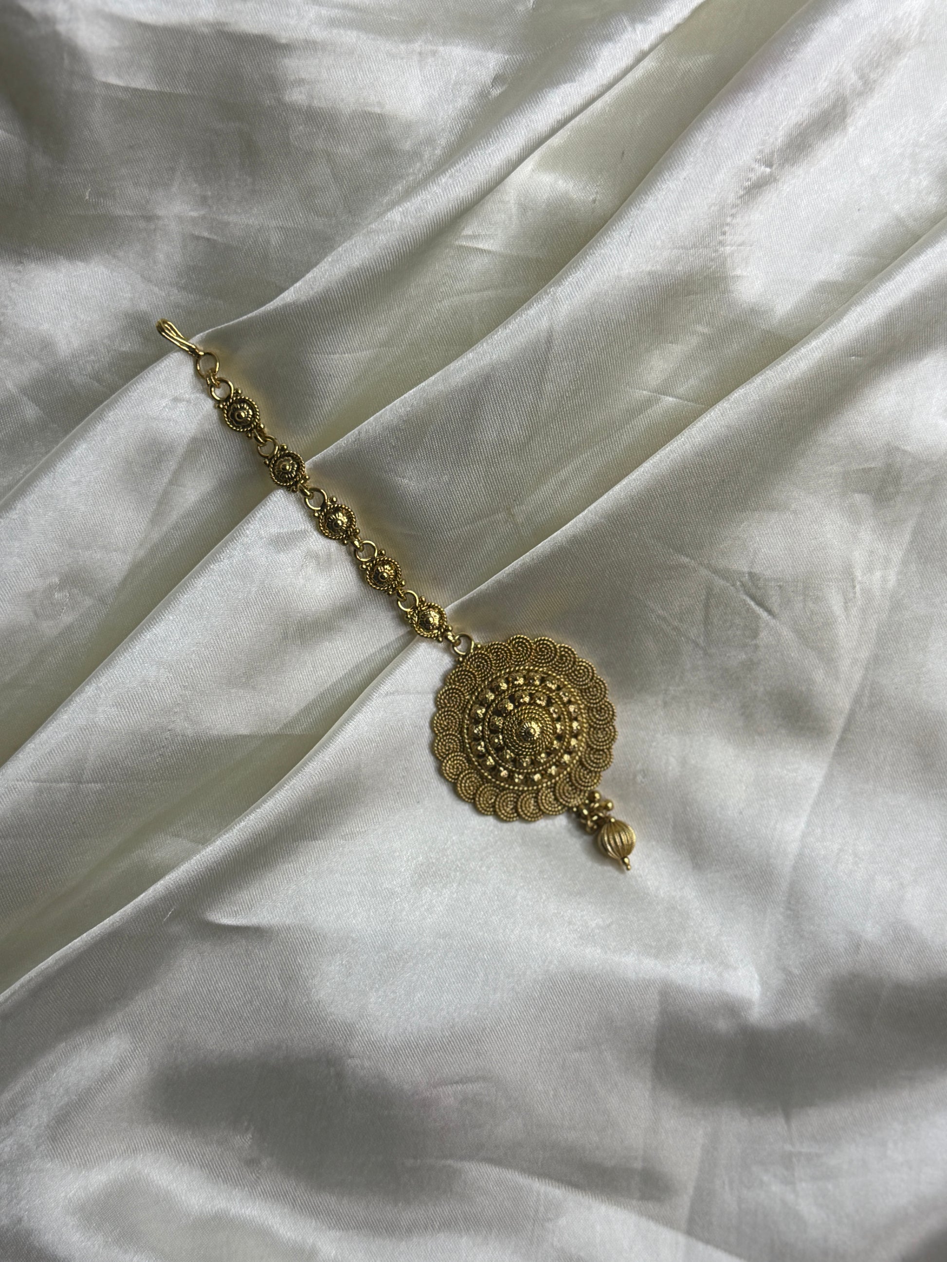 Golden Heritage: Antique Maangtikka with Unique Pattern and Golden Beads