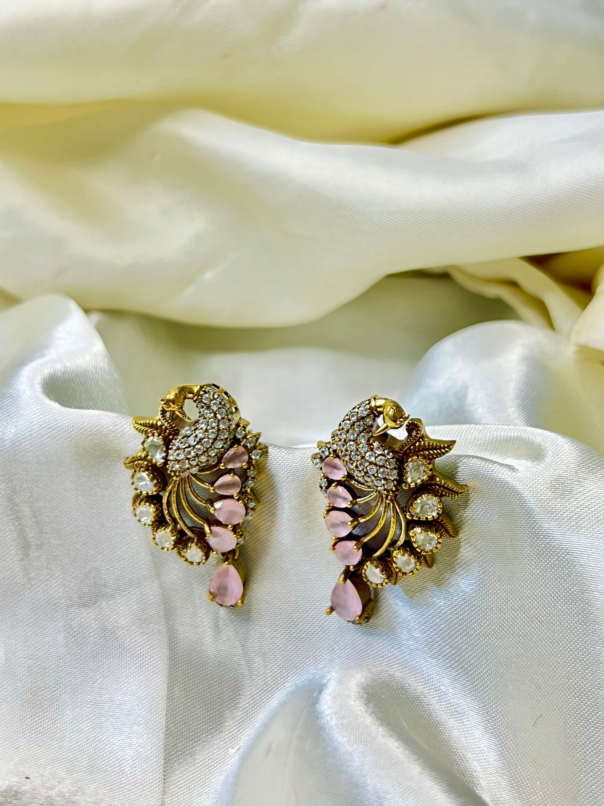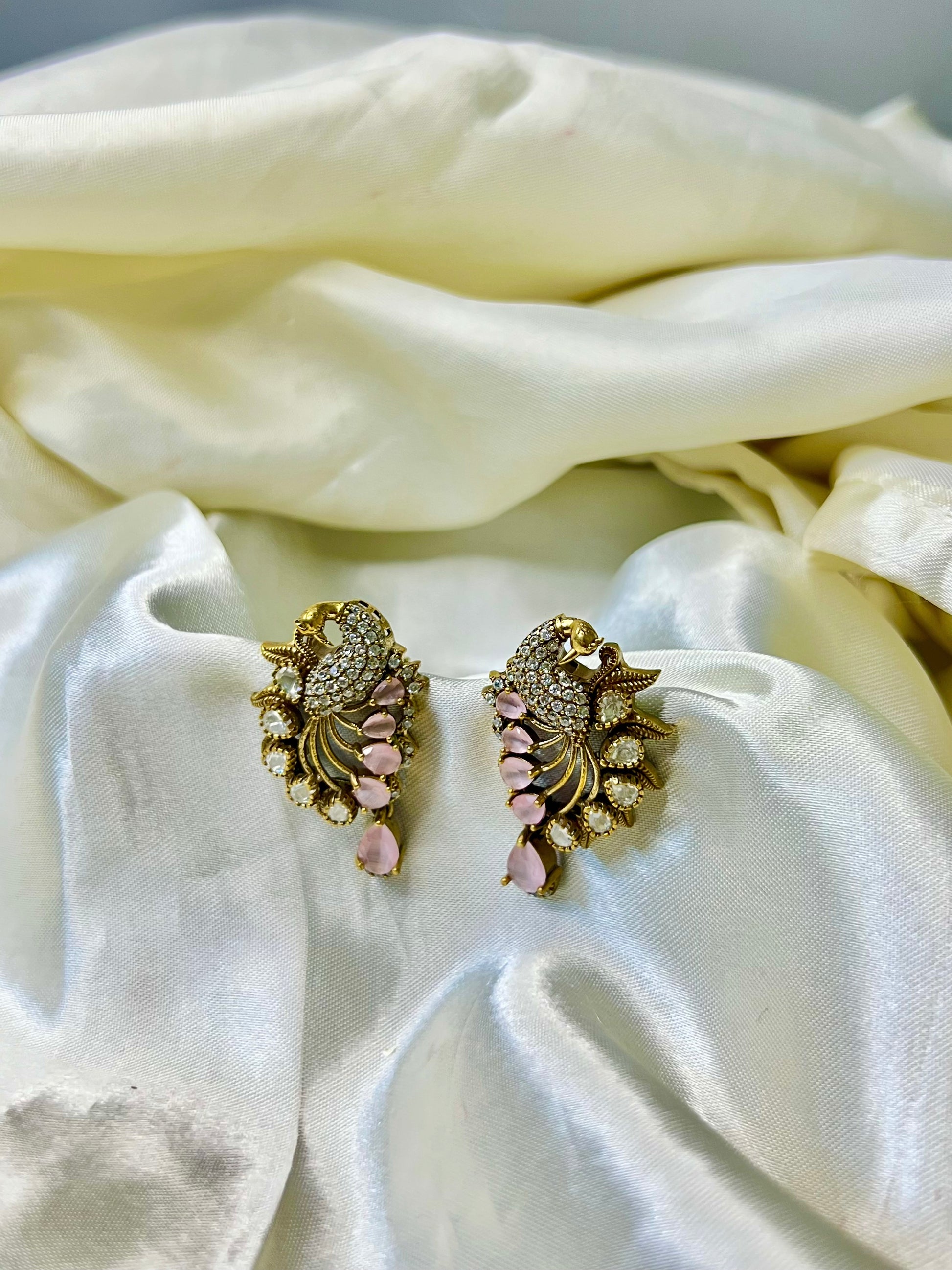 Victorian Peacock Earrings with Pink Stones β Elegant & Timeless