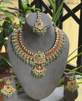 Jadau Bridal Necklace with strawberry beads - Combo with Earrings and Tikka