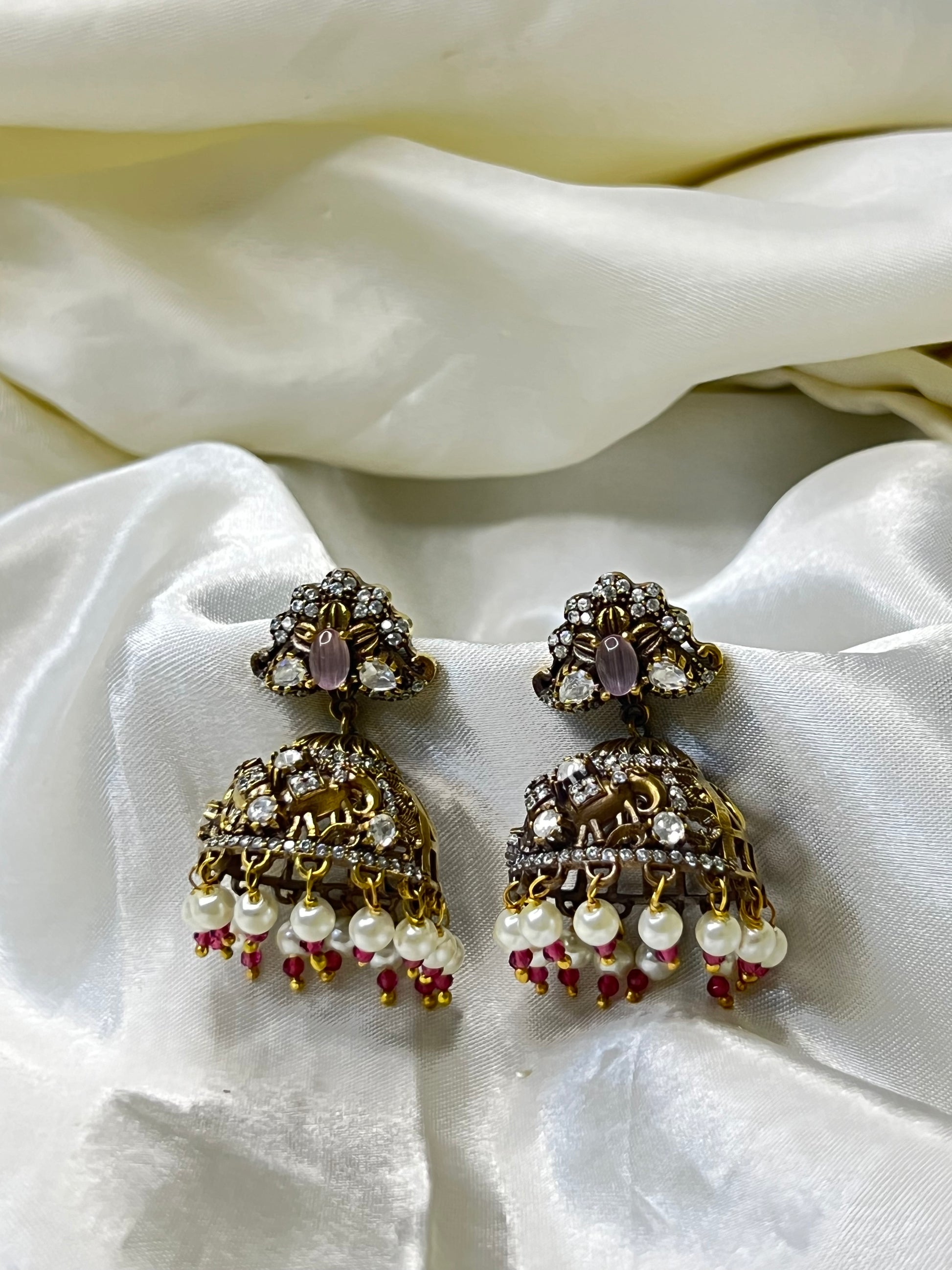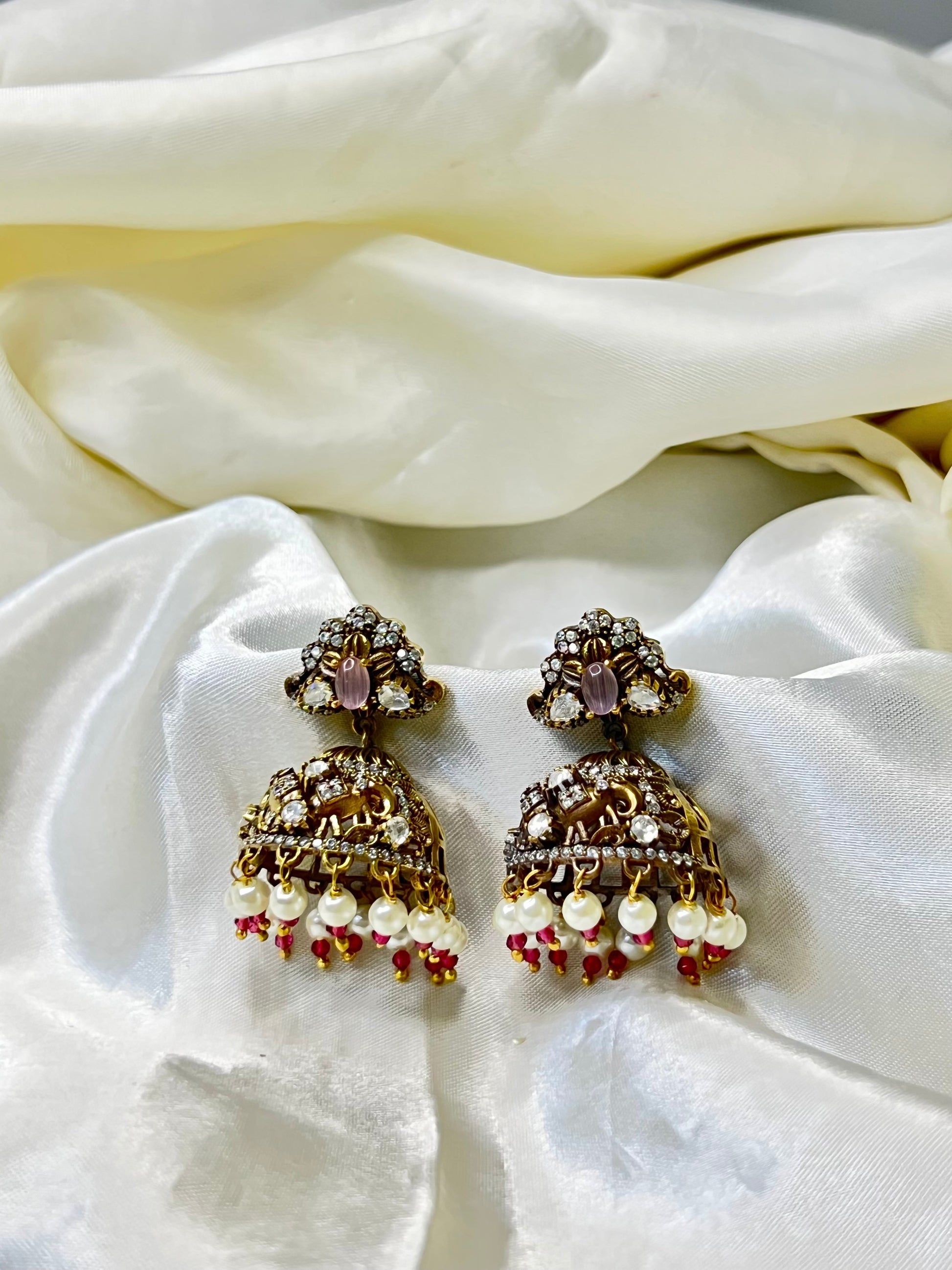 Imperial Elephant Charm β Victorian Earrings with Pink Stones & Crystal Detailing