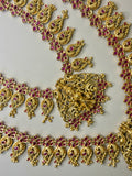 Majestic Peacock & Lakshmi Necklace with Pink Stones & Golden Beads