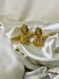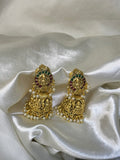 Elevate your elegance with these stunning antique jhumka earrings, intricately designed with a divine Lakshmi motif, symbolizing prosperity and grace. Adorned with sparkling stones and delicate floral detailing, these earrings exude a timeless charm. The cascading golden beads add a regal touch, making them perfect for weddings, festive occasions, and cultural celebrations. A masterpiece of craftsmanship, these jhumkas are a must-have for those who appreciate heritage-inspired jewelry