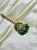 Verdant Royalty: Victorian Maangtikka with Green Stones and Green Beads