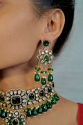 Victorian-Inspired AD Choker Set with Green Stone and Pearl Drops