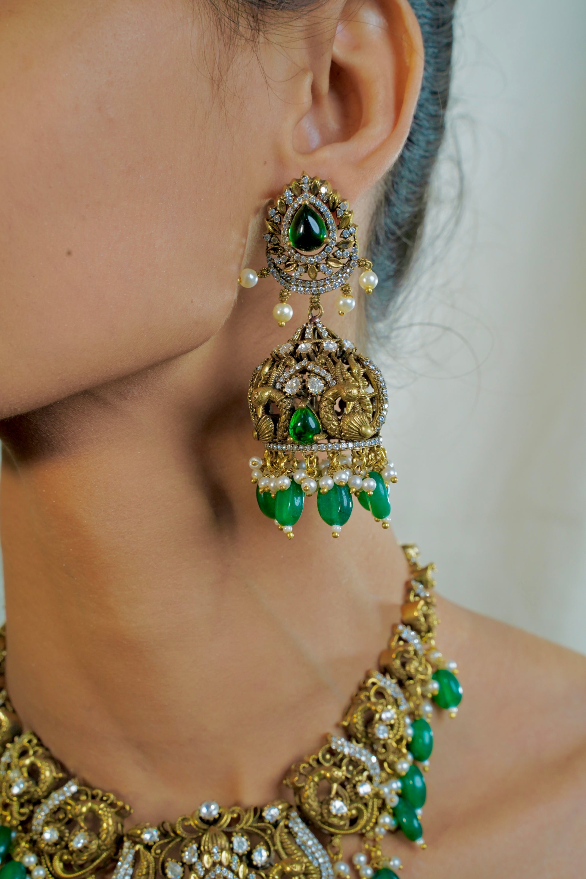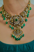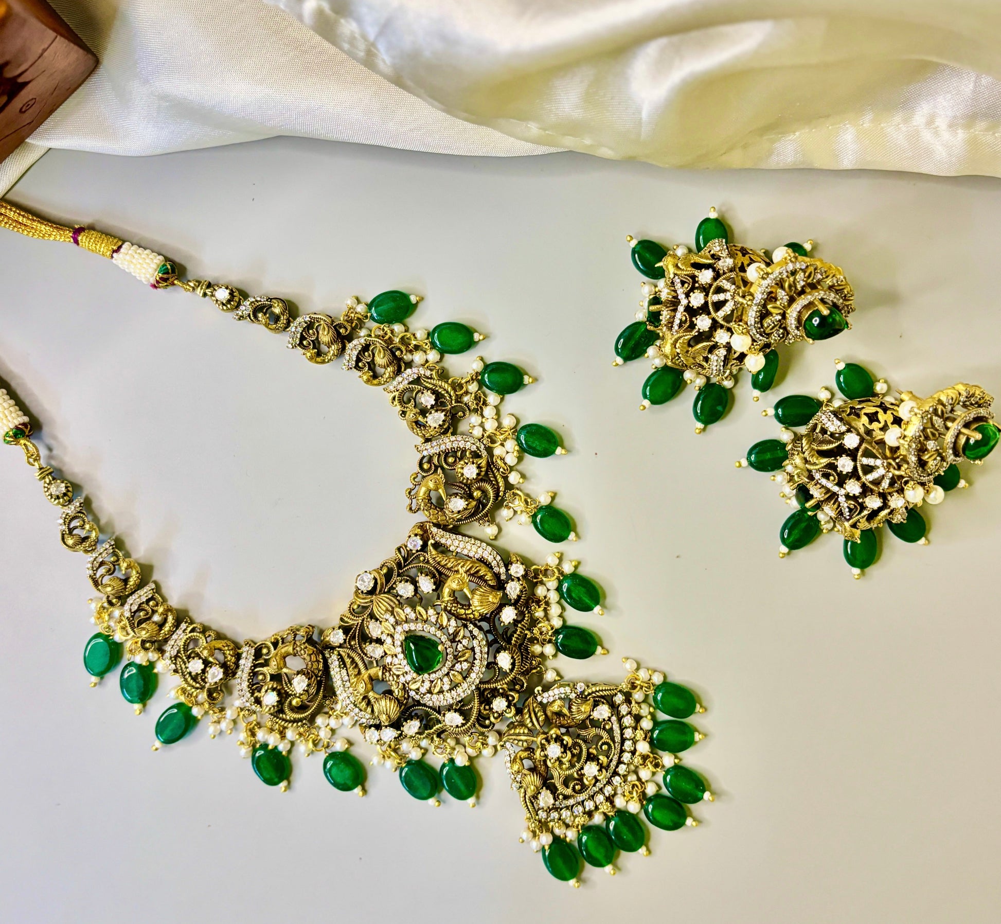 Victorian Peacock Necklace with Crystal Detailing & Green Beads