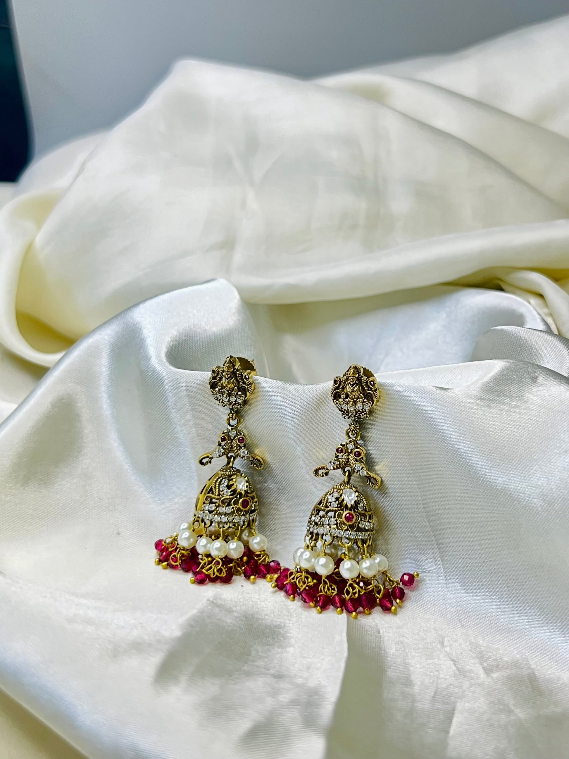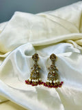 Antique Lakshmi Jhumka with Red Beads & Stone Detailing