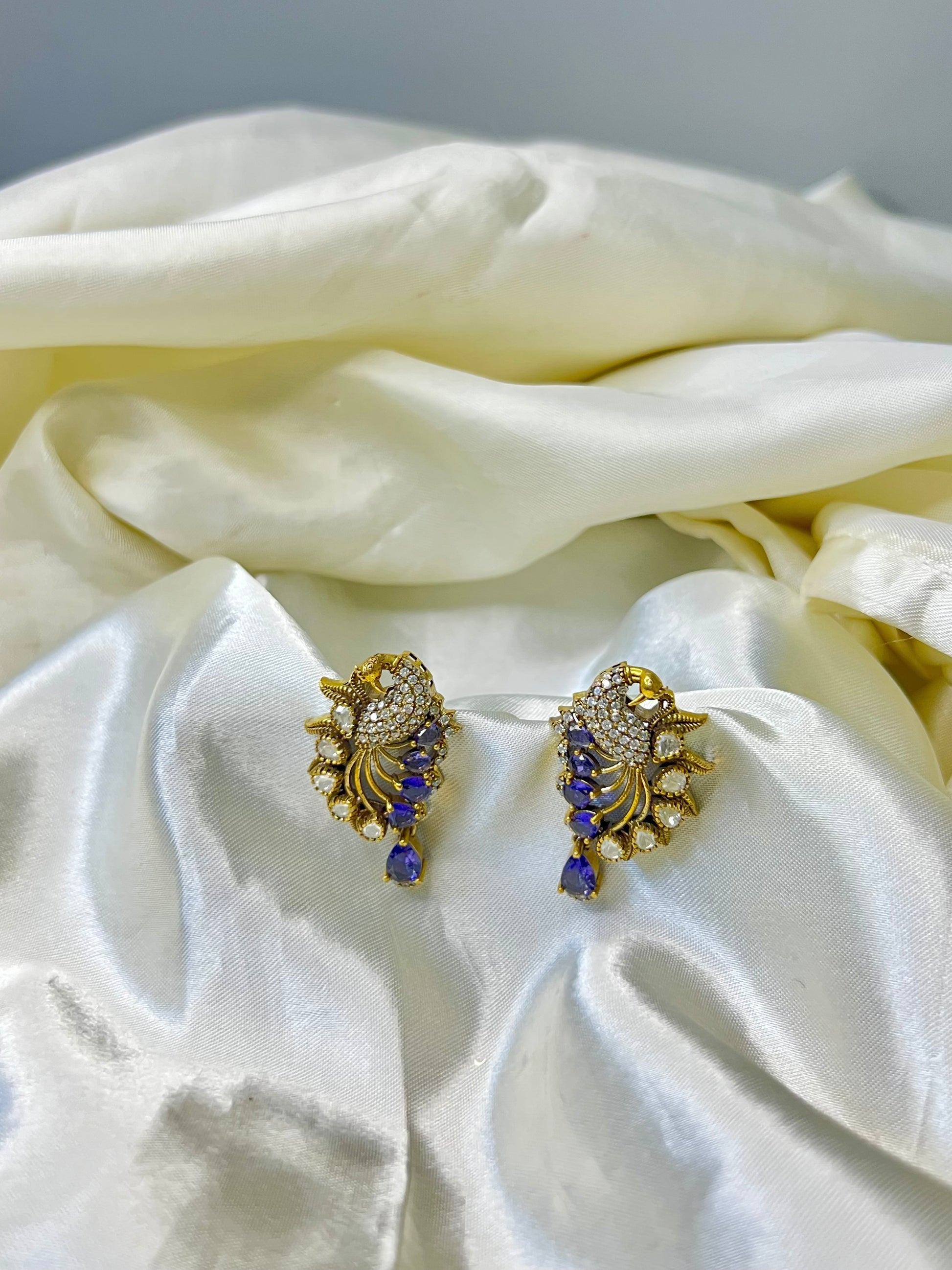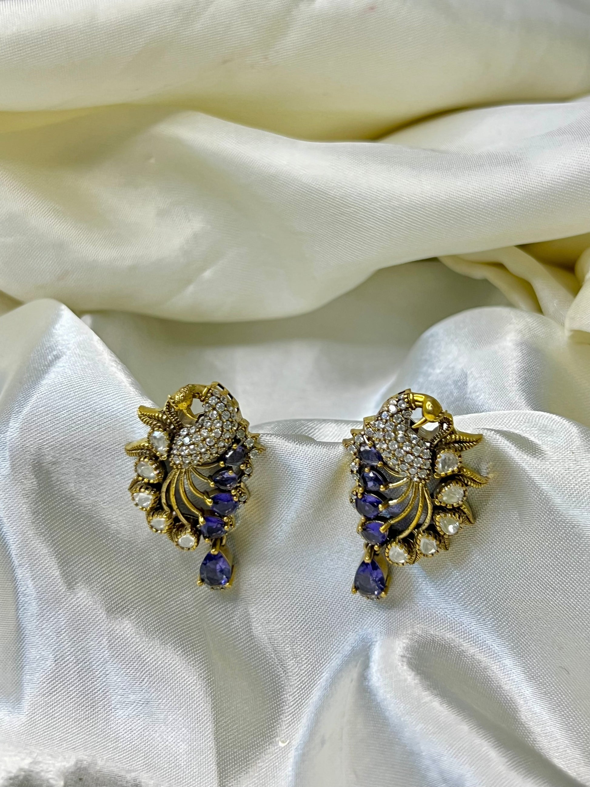 Victorian Peacock Earrings with Purple Stones β Elegant & Timeless