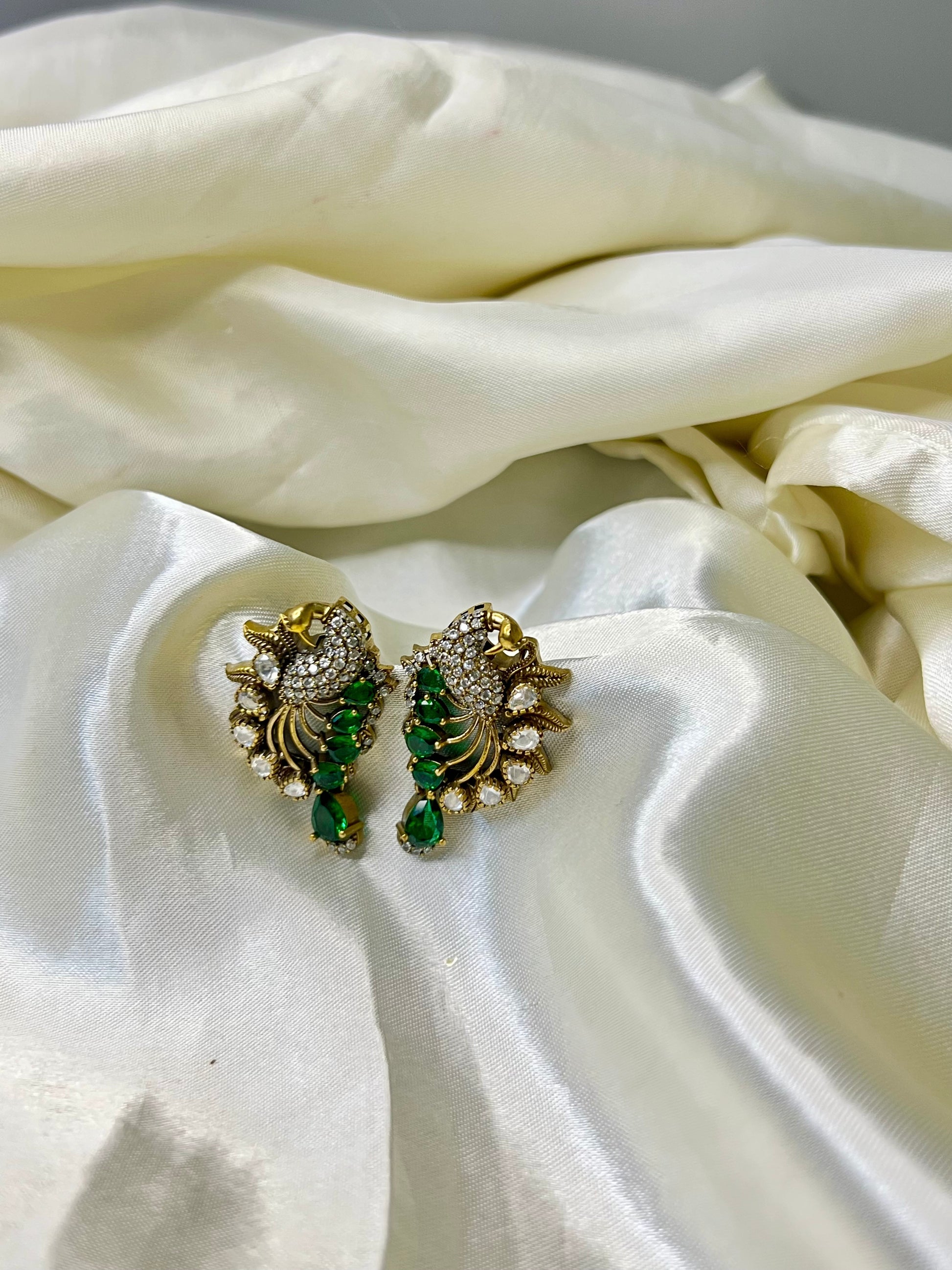 Victorian Peacock Earrings with Green Stones β Elegant & Timeless