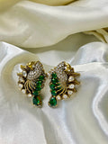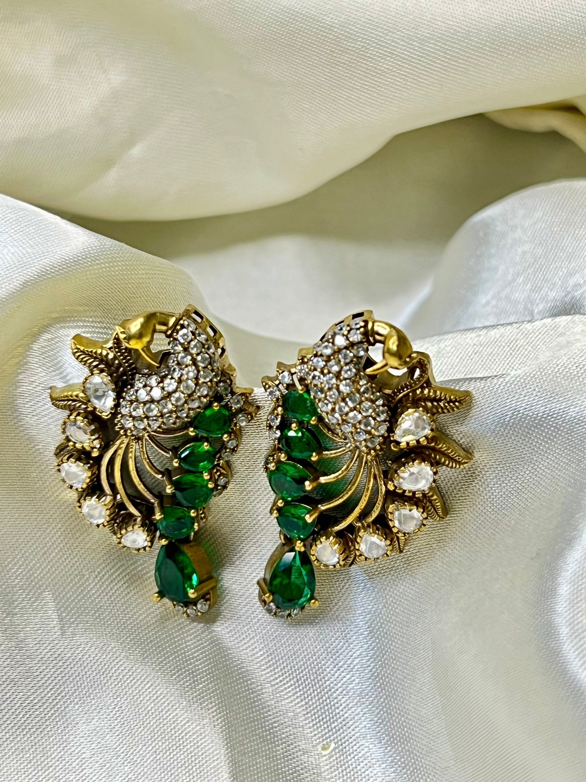 Embrace vintage elegance with these exquisite Victorian earrings, featuring intricate peacock detailing and radiant Green stones. Designed to captivate with their regal charm, these earrings beautifully blend heritage artistry with a touch of modern sophistication. Perfect for special occasions, they add a timeless allure to any ensemble.